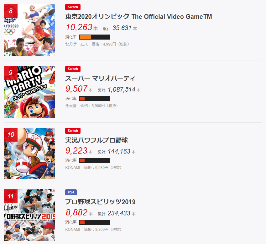 8位Switch 10,263本 東京2020オリンピック