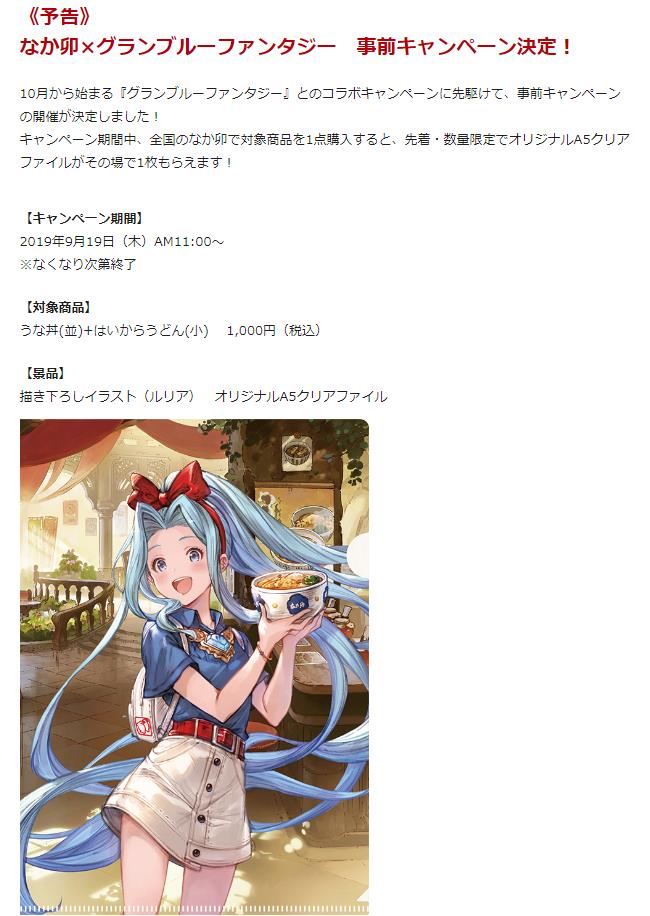 ■なか卯×グランブルーファンタジー 事前キャンペーン決定!