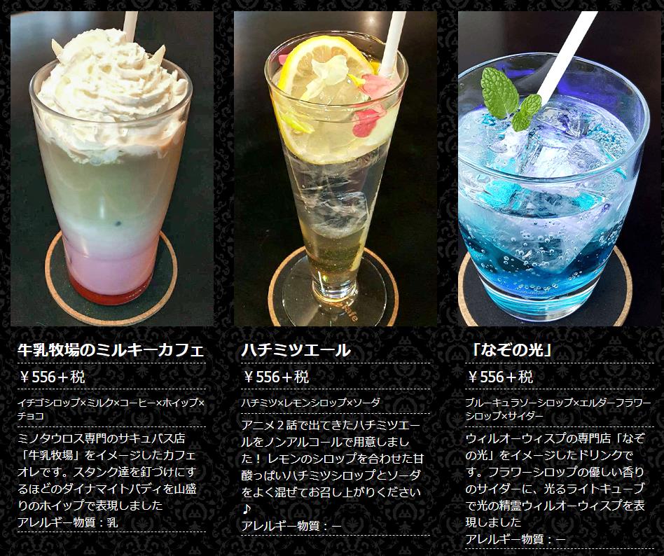 作品の世界観を表現した あ〜んなメニュー や、こ〜んなメニュー を遊び心たっぷりに創作いたしました。アニメといっしょに是非お楽しみください♪