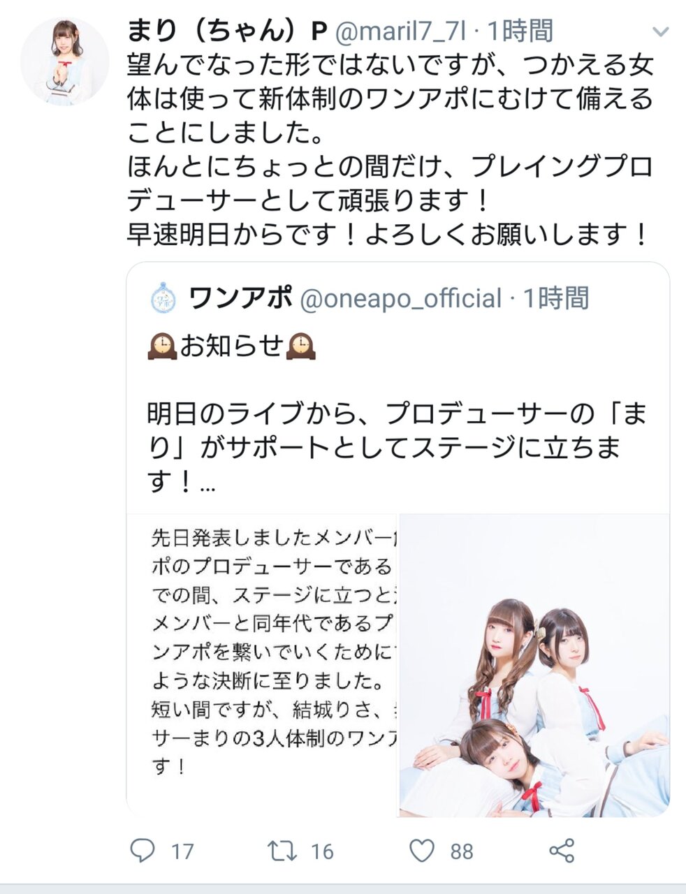 プロデューサー「代わりに私がしばらくプロデューサー兼アイドルとして入ります!!!!」←強い pic.twitter.com/gt9RpXnNis