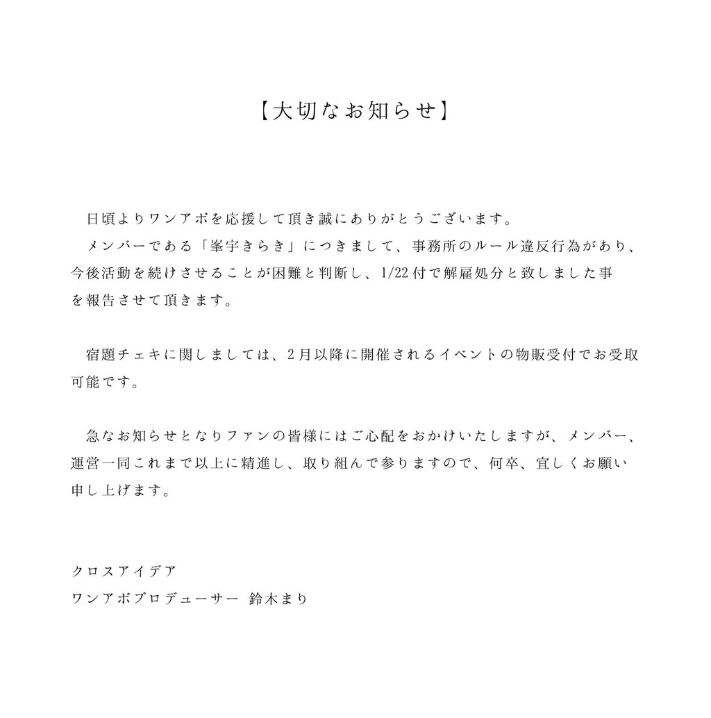 うち一人がやらかして解雇