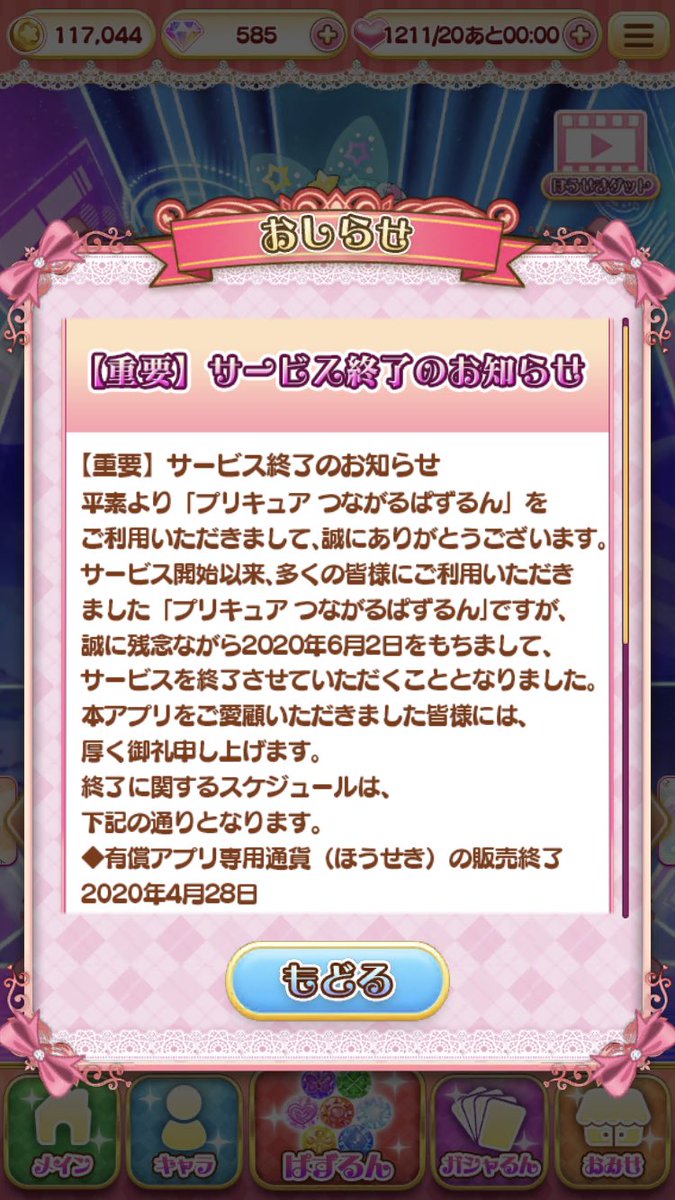 ・プリキュアつながるぱずるん、配信当時は女児向けコンテンツであるにもかかわらず、あまりの難易度の高さに「メキシコの荒野」「プリキュアが実際に立たされている窮地を体験できる」などとレビューされていたが、ついにサービス終了か…