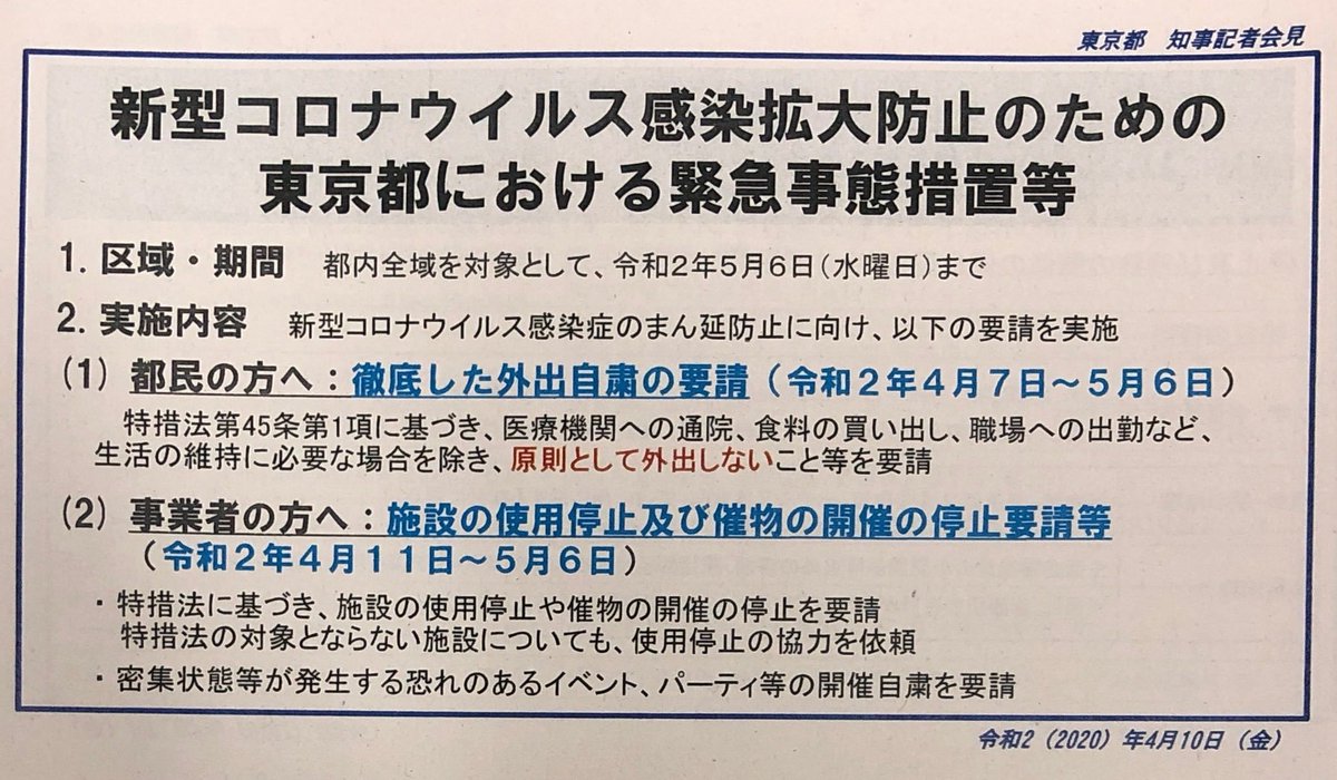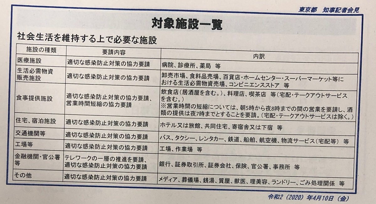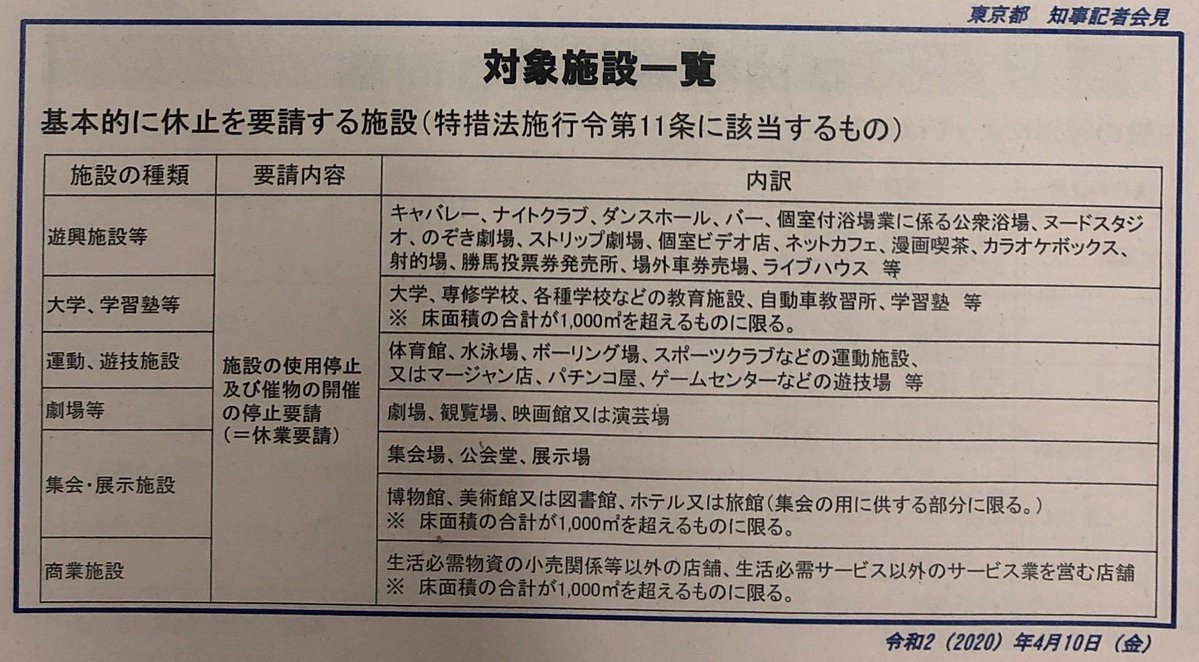 【画像】報道配布資料(休業要請対象など詳細) pic.twitter.com/3AqhqyxgGe
