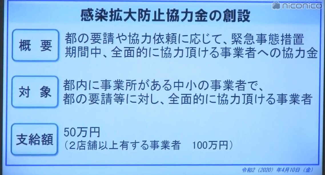 小池都知事は緊急事態宣言に伴う休業要請の概要を記者会見で発表。要請に協力する事業者への協力金を出すことを表明しました。 pic.twitter.com/iGebcWqbmt