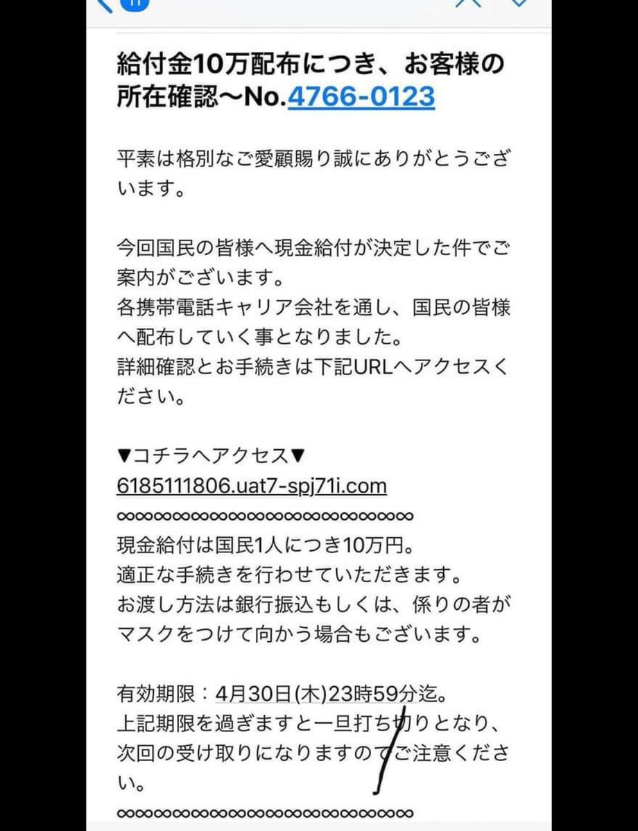 ・こういう詐欺が起こるから無条件に配ってくれたらいいと思う