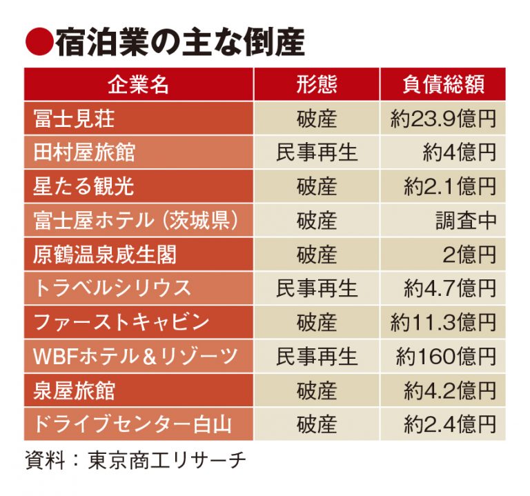 ファーストキャビン、WBFホテル&リゾーツ……。新型コロナ関連の破綻が相次ぐ宿泊業。訪日客や東京オリンピック(五輪)をにらみ拡大してきたホテル開業・投資を直撃しています。