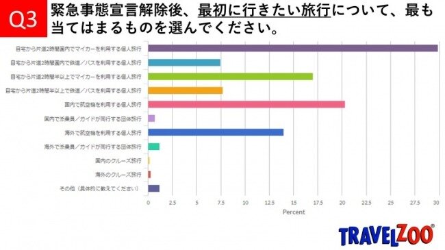 ・トラベルズー・ジャパンは、日本国内の会員に対し、緊急事態宣言解除後の旅行意向に関する調査を実施した。5月12日から17日にかけて調査を実施し、会員4,306人から回答を得た、