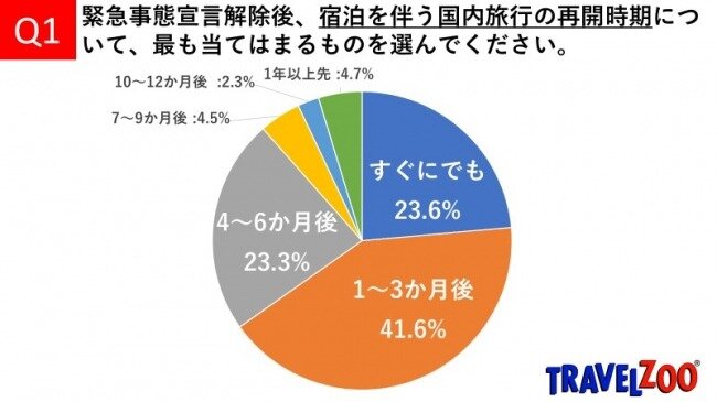 緊急事態宣言解除後、「旅行好き」6割以上が3ヶ月以内の国内旅行に意欲 トラベルズー調査
