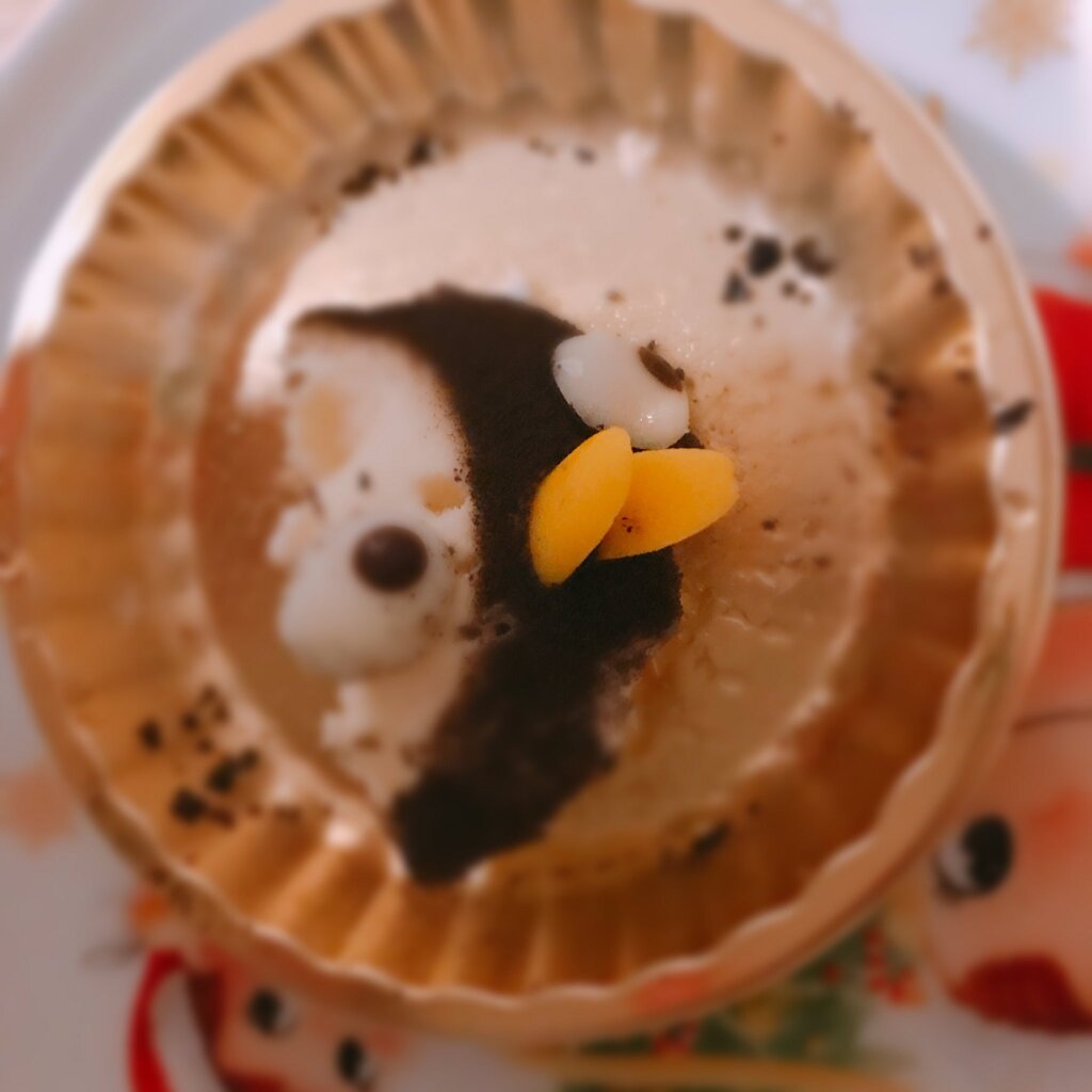 お仕事場の近くにかわいいケーキが売ってあって、「かわいいペンギンちゃんだ☺️」と思って思わず買ってしまい、ウキウキしておうちに帰って開けたらこうなってた…