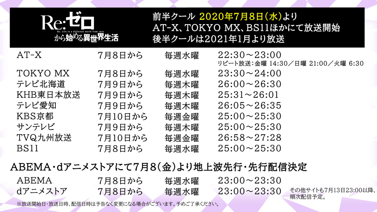 ABEMA・dアニメストアでは地上波先行・先行配信が決定!#rezero#リゼロ#リゼロ世界初公開#早く見たい場合は配信で pic.twitter.com/ydZQPLqoLB