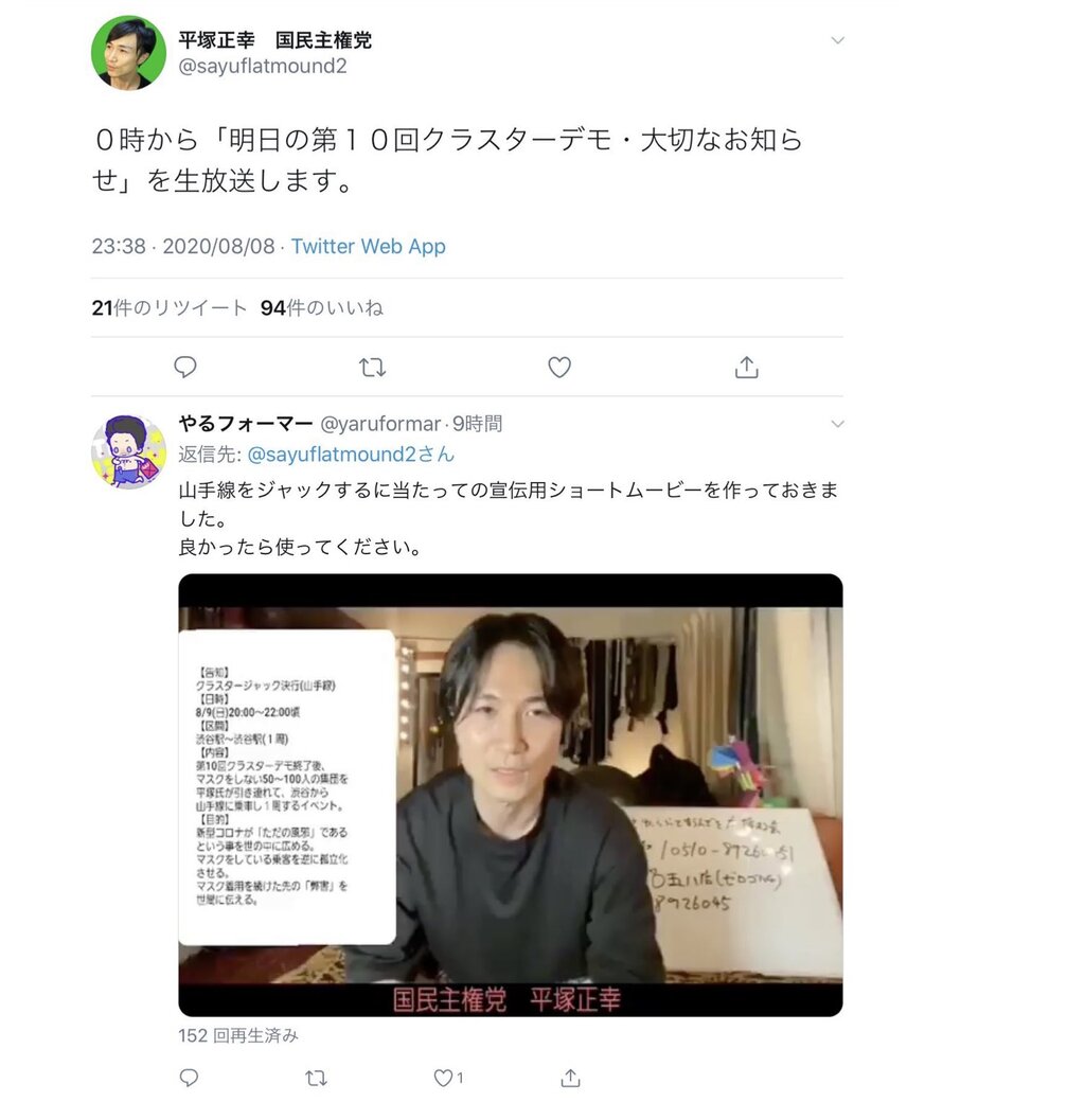 — 平塚正幸 国民主権党 (@sayuflatmound2) August 9, 2020