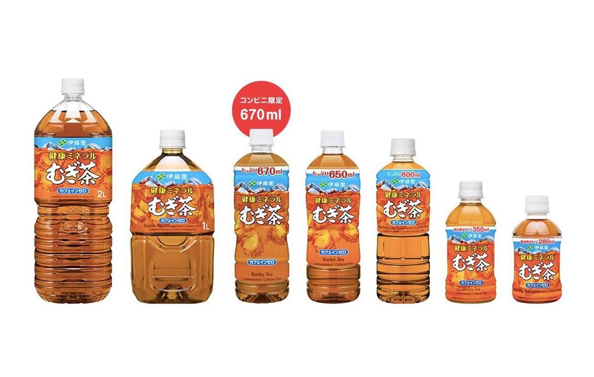・伊藤園の「健康ミネラルむぎ茶」の内容量が増え続けている。1996年の発売時は500ミリリットルだったが、この10年で170ミリリットルも増え、現在は670ミリリットルになっている。