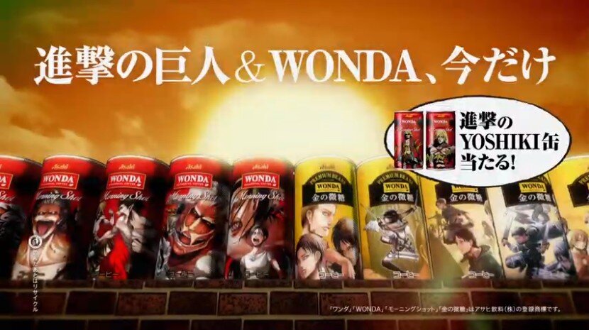 ・なお現在「ワンダ」では、「進撃の巨人」のデザインが施されたコラボ缶全20種類を発売中。抽選で限定アイテム「進撃のYOSHIKI缶」が500人に当たる「YOSHIKIコース」と、同じく「進撃の巨人」の原画レプリカポスターが500人に当たる「進撃の巨人コース」に申し込めるキャンペーンも実施されている。詳細はキャンペーンサイトにて確認を。