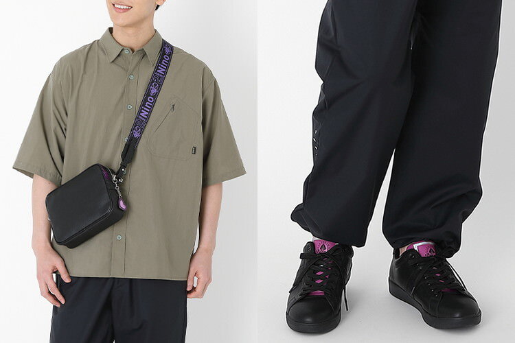 ・バッグ・シューズともにブラックをベースに、一花モデルはイエロー、二乃モデルはパープル、三玖モデルはブルー、四葉モデルはグリーン、五月モデルはレッドを配色。腰巻き上着、髪飾り、ヘッドフォン、リボン、星といった5つ子を象徴するモチーフがさりげなくデザインされ、普段使いしやすいアイテムが揃えられた。