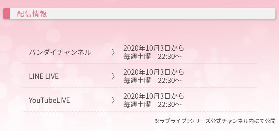 バンダイチャンネル、LINE LIVE、YouTube Live:2020年10月3日(土)より毎週土曜22:30~配信予定