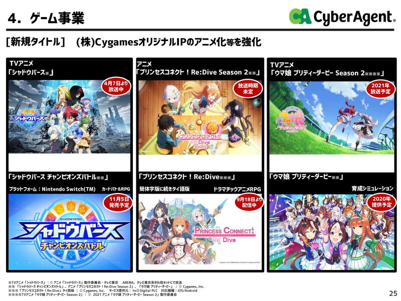 サイバーエージェント、第4四半期のゲーム事業は『プロセカ』と『このファン』ヒットで増収増益 新作は『ニーア』に期待 『ウマ娘』は年内配信へ