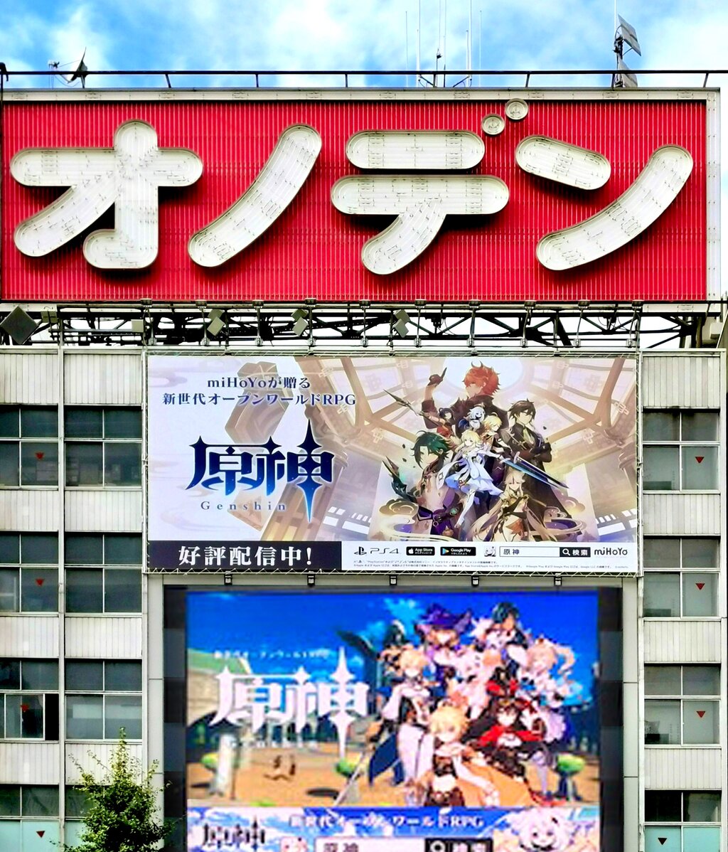 JR秋葉原駅電気街口出てすぐの西側広場、オノデン壁面の二箇所にて原神のポスターが掲示されます✨
