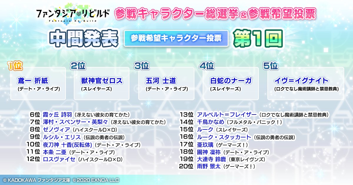 【参戦キャラクター総選挙&参戦希望投票】#ファンリビ 参戦希望作品投票中間発表