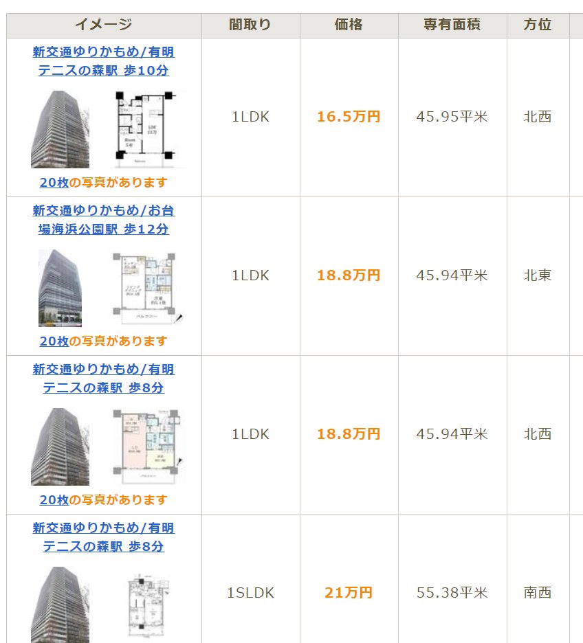 3LDKの最多価格帯は賃貸だと24万円、分譲だと7000万円程、ゆうぽむのところよりほんの少し安め。恐らく交通の便が少し悪いせいだと思われる。 pic.twitter.com/to8nJcHRv6