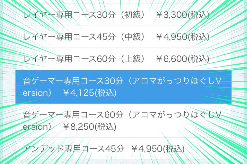 当店は音ゲーマー専用コースをご用意しております。全身運動で疲労したお身体を癒すことができますので、音ゲーマーの皆様ぜひご利用ください! pic.twitter.com/vMS6QqDIle