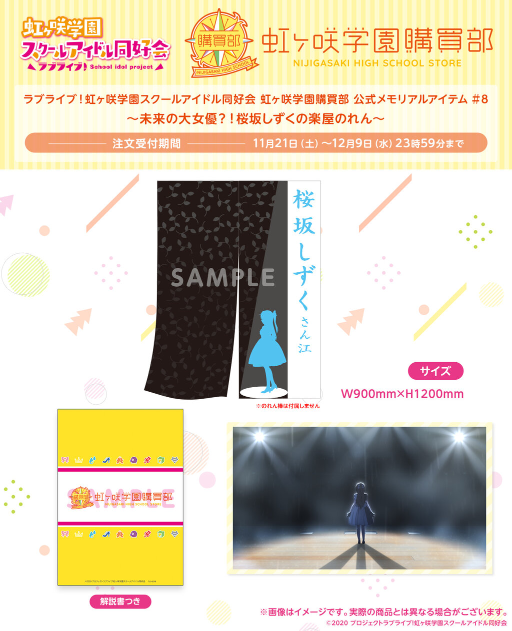 「ラブライブ!虹ヶ咲学園スクールアイドル同好会」公式通販サイト「虹ヶ咲学園購買部」より、演劇もスクールアイドルも頑張るしずくをイメージした楽屋のれんが登場!