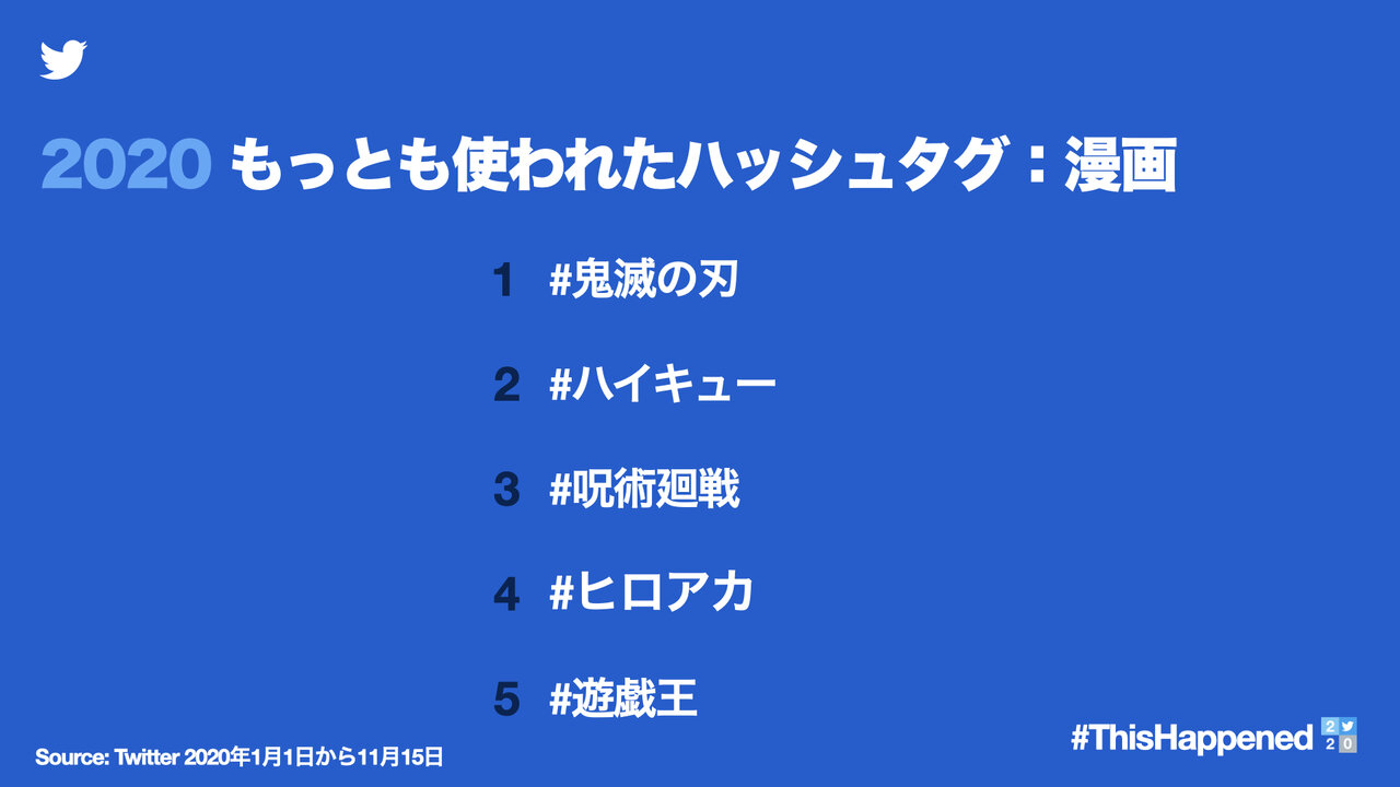 ▼今年もっとも使われたハッシュタグ:漫画