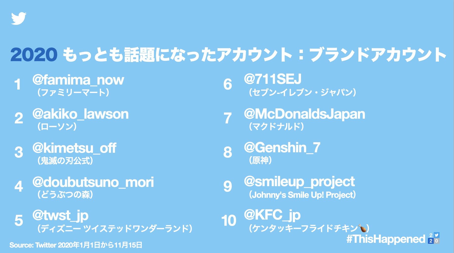 ▼今年もっとも話題になった:ブランドアカウント