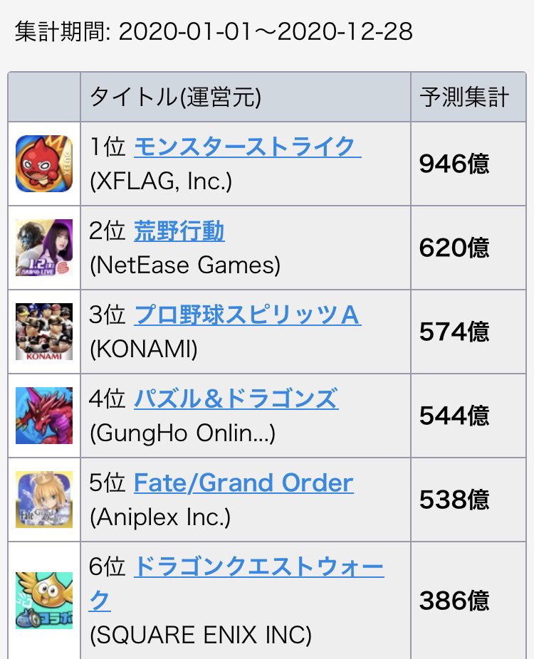 …あと年々下がってるFGOは大丈夫なのかしら?2020年になってガクッと下がった理由はまぁなんとなく分かるけど… pic.twitter.com/6I6ga0zcvD