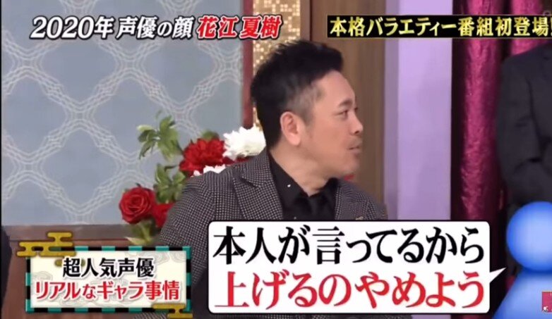 ・しゃべくりメンバーからは「強気の設定にしたら?」「ギャラ上げてもらわないと」など、あまりの安さに驚きと心配の声があがったが、花江は「いやー、まだ、アニメでいっぱい名前を知ってもらうのが大事なことだと思うんで」「(ギャラ設定は)変わらずやると思います」と微笑み、さらに驚かせた。