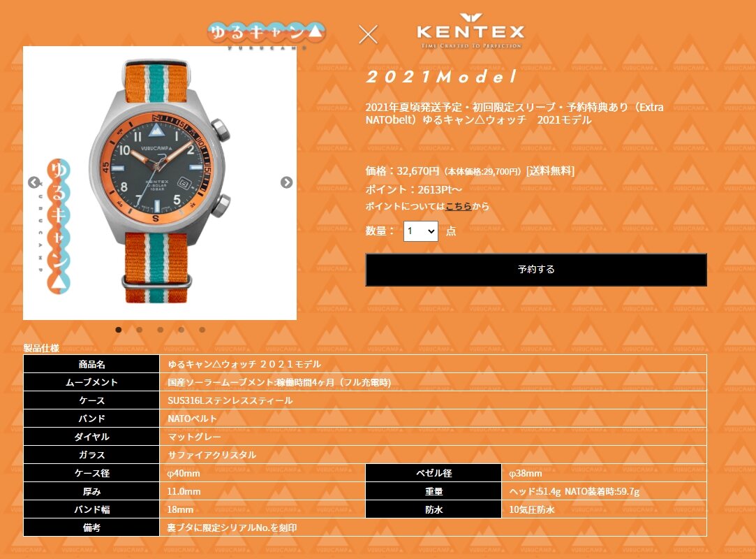 ・あfろ原作によるTVアニメ「ゆるキャン△」と国産時計メーカー・ケンテックスジャパンのコラボウォッチが、6月に発売される。