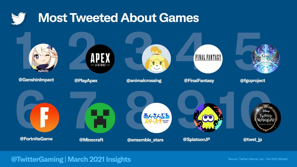 リストは昨年から大きく変わり、@GenshinImpactが1位になりました🏆@GenshinImpact @PlayApex@animalcrossing @FinalFantasy@fgoproject@fornitegame@Minecraft@ensemble_stars@SplatoonJP@twst_jp pic.twitter.com/4J3xaq0WvB