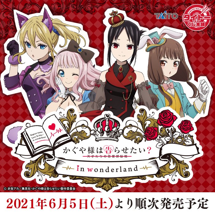 『タイトーくじ本舗 かぐや様は告らせたい? in wonderland』よりA賞は描き下ろしイラストを使用した"藤原千花"のフィギュアが登場します!くじの発売は6月上旬予定!お楽しみに!#タイトーくじ本舗 #かぐや様は告らせたい? pic.twitter.com/MhxU9AutEN
