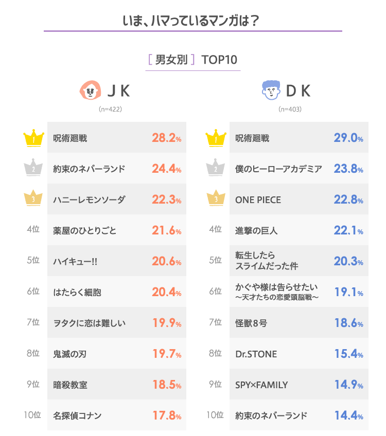 ・男女でTOPとなった作品は「呪術廻戦」。