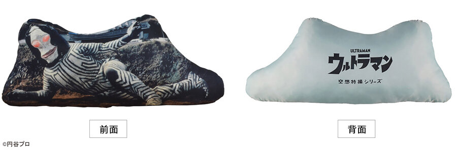 ・そんなダダが寝そべり、ウルトラリラックスしているかのようなデザインの「ダダの寝そべりクッション」は全長1.2メートルのビッグサイズ。背面にはウルトラマンのロゴがプリントされています。