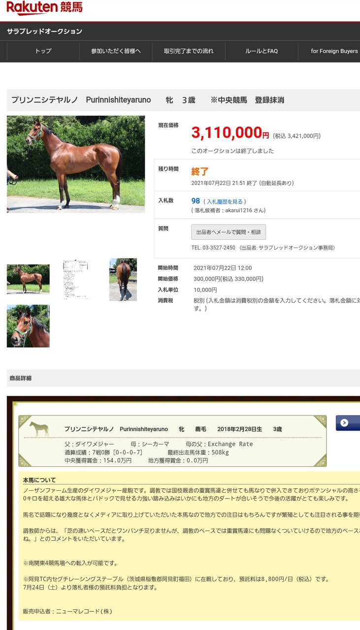 プリンニシテヤルノがJRA登録抹消、サラブレッドオークションにて311万円で落札https://t.co/fuGhHt3har