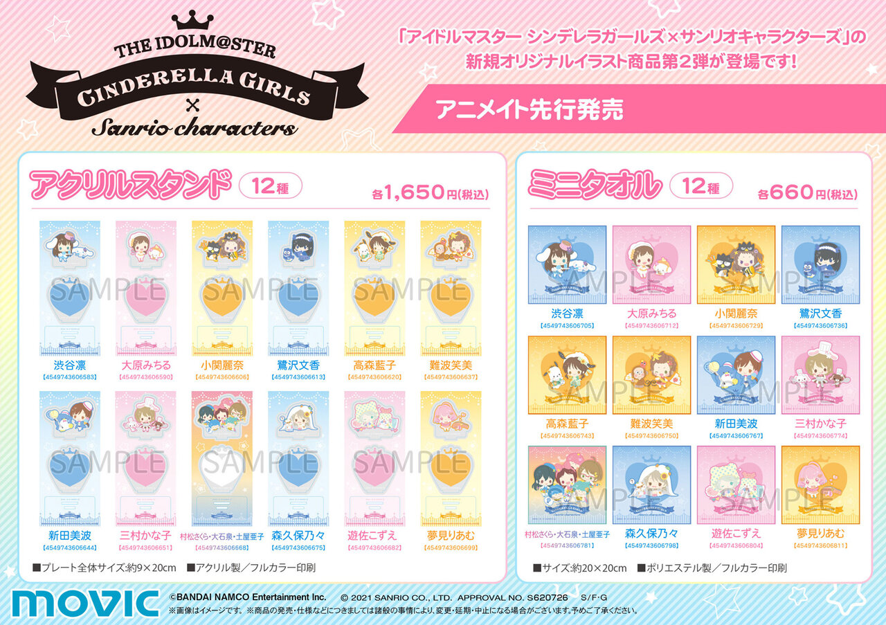 アイドルマスター シンデレラガールズ×サンリオキャラクターズの第2弾のアクリルスタンド、キラキラキャラバッジコレクション、クリアファイル等の新商品が続々登場!