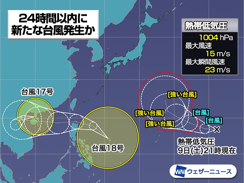 ・気象庁はこの熱帯低気圧について、24時間以内に台風に発達する見込みとの情報を発表しました。