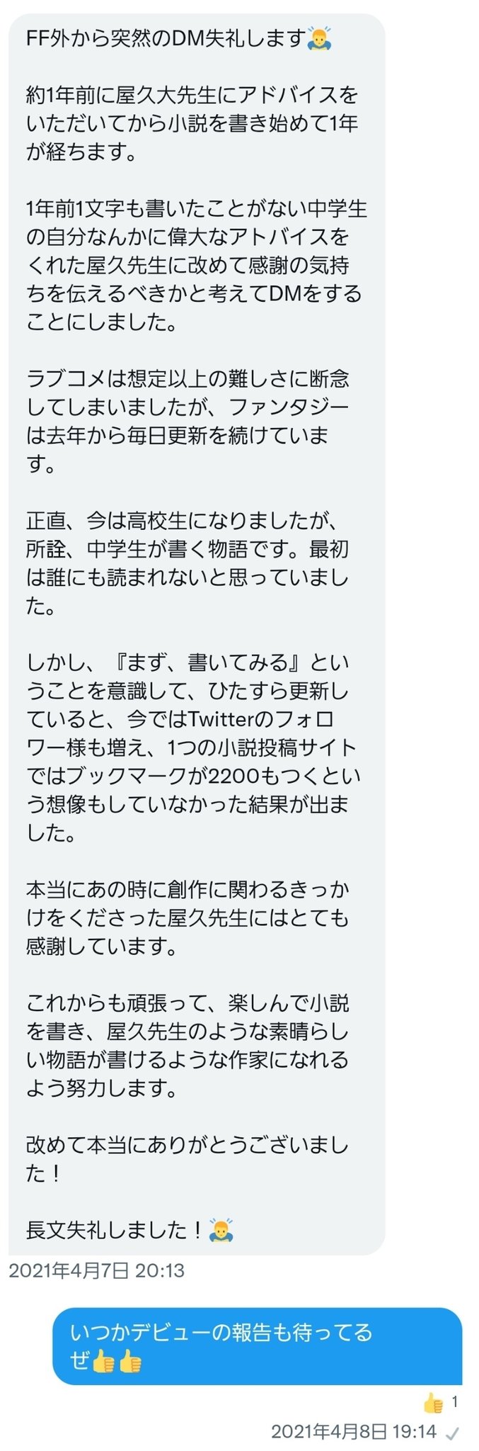 ・DMの文章力と社会性も如実に向上してて、思春期の成長ってすごいなと暖かい気持ちになる