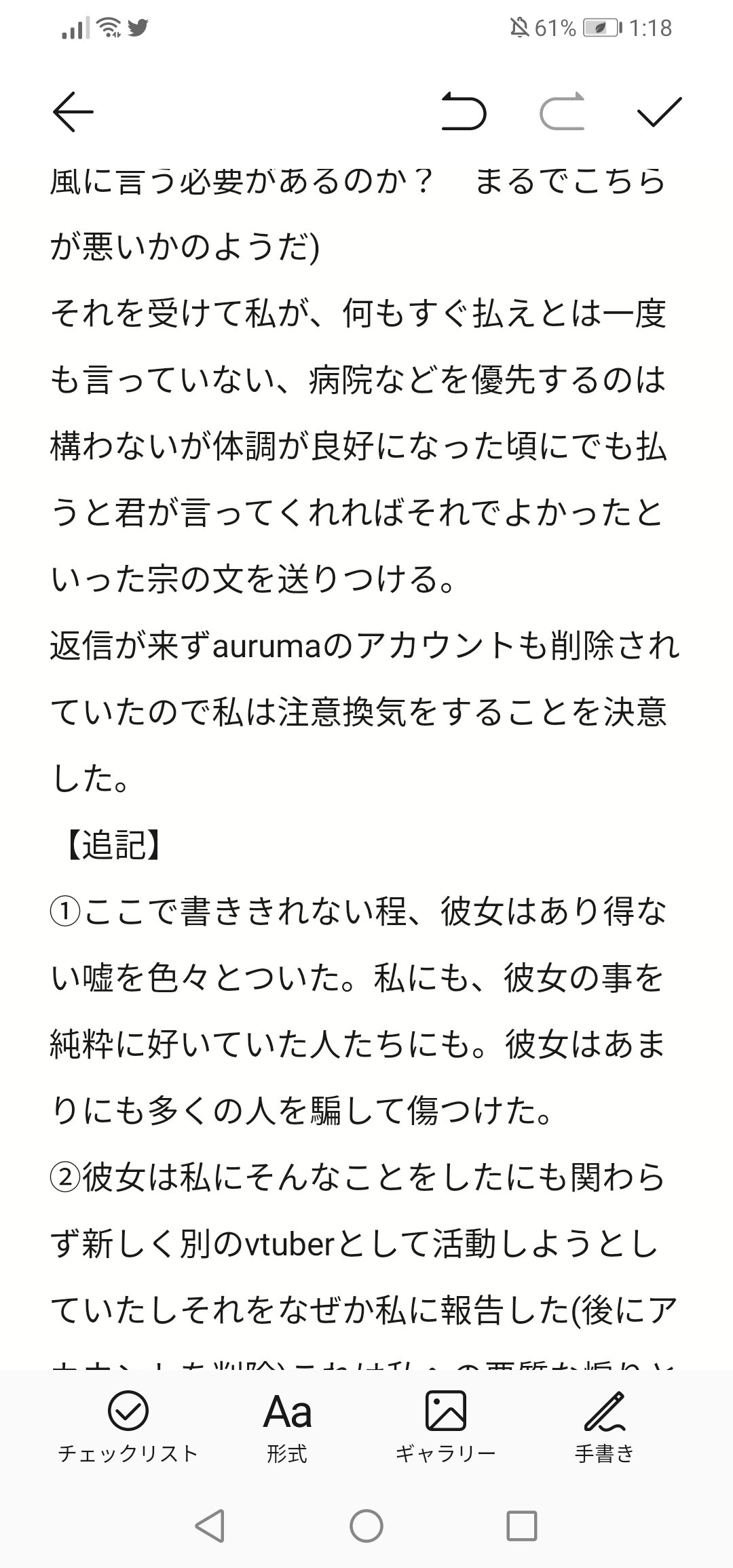 そして、私がこの件で一番怒っているのは彼女が、死んだと嘘をついて私以外の人も酷く傷つけたことと彼女が東/リベキャラのアイコンを使ったことです。ご閲覧ありがとうございました。