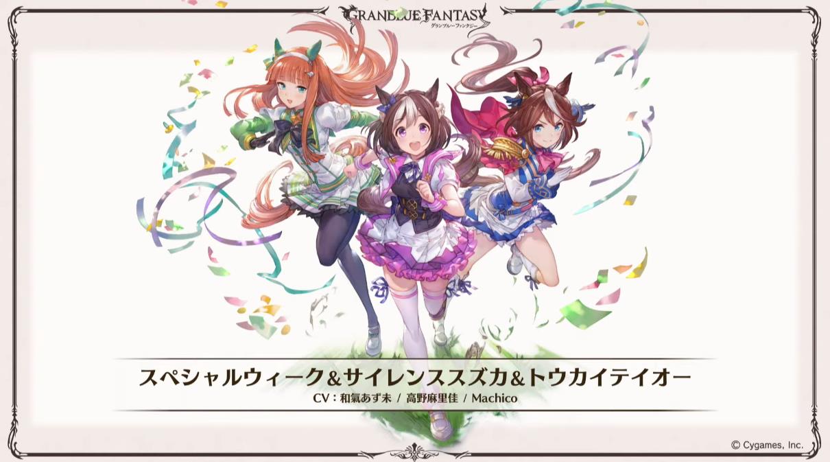 【グラブル生放送速報】2022年2月、「ウマ娘 プリティーダービー」とのコラボイベントの開催が決定!プレイアブルキャラクター「スペシャルウィーク&サイレンススズカ&トウカイテイオー」と召喚石「ゴールドシップ&メジロマックイーン」のイラストを公開! #グラブル #グラフェス2021 pic.twitter.com/QNwrsxpTqE