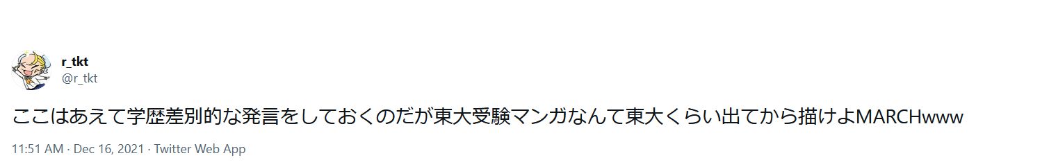 「東大受験漫画は東大出てから描け」などと投稿(現在削除済み)