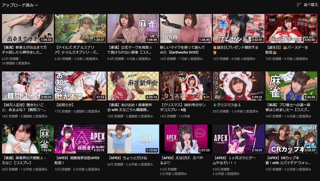 有名コスプレイヤーみたいなYouTube外のイベント出演等をメインに仕事してる人の配信なら登録者数100万人クラスでこの再生回数でもめちゃくちゃ多い数字だよ