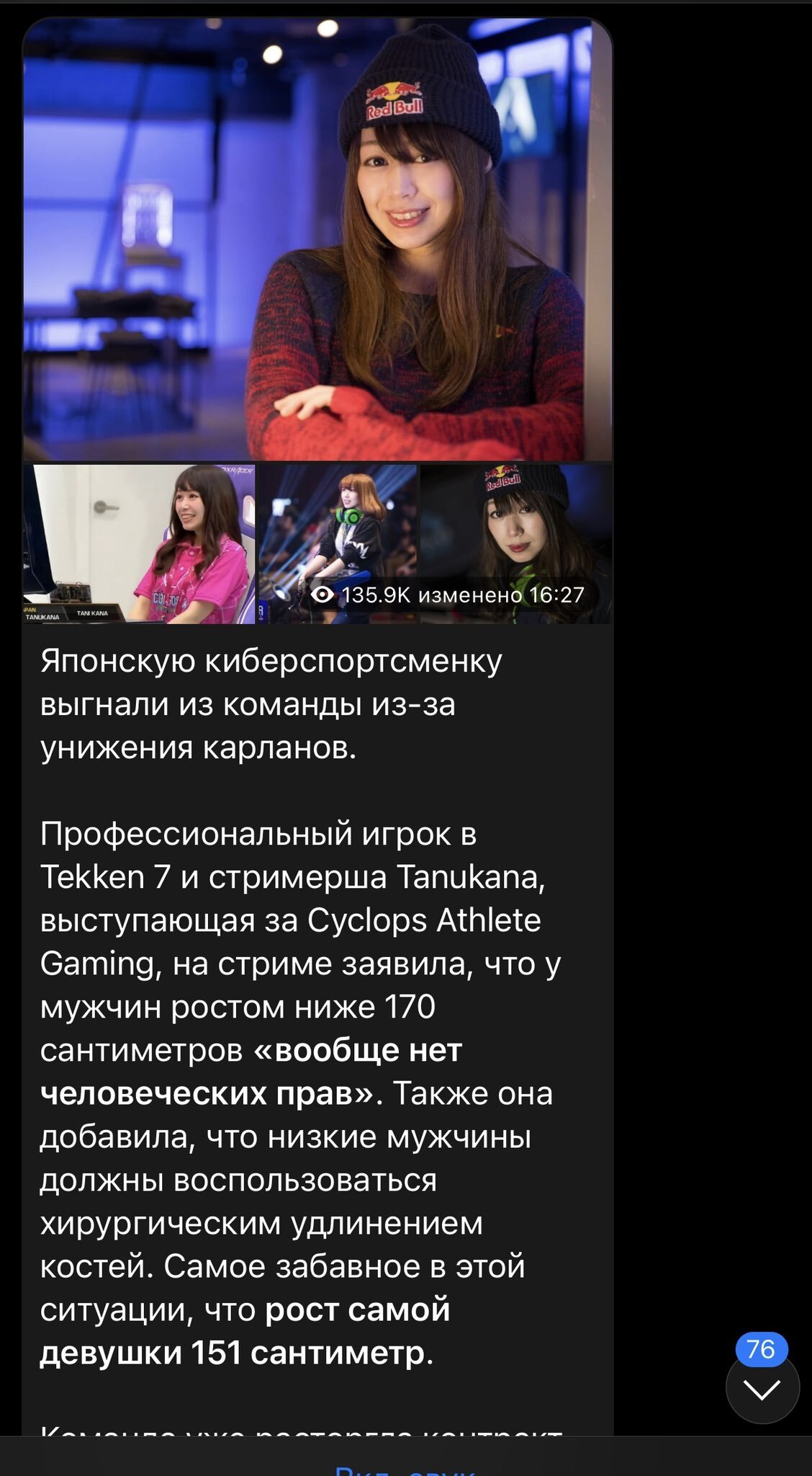 In recent days, a female Tekken pro known as "Tanukana" was booted from her Org after saying that men under 5 ft 7 inches "don't have human rights" pic.twitter.com/DHJ1Y8Dl9M