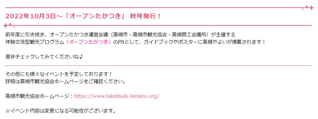 高槻市観光協会ホームページ:https://www.takatsuki-kankou.org/