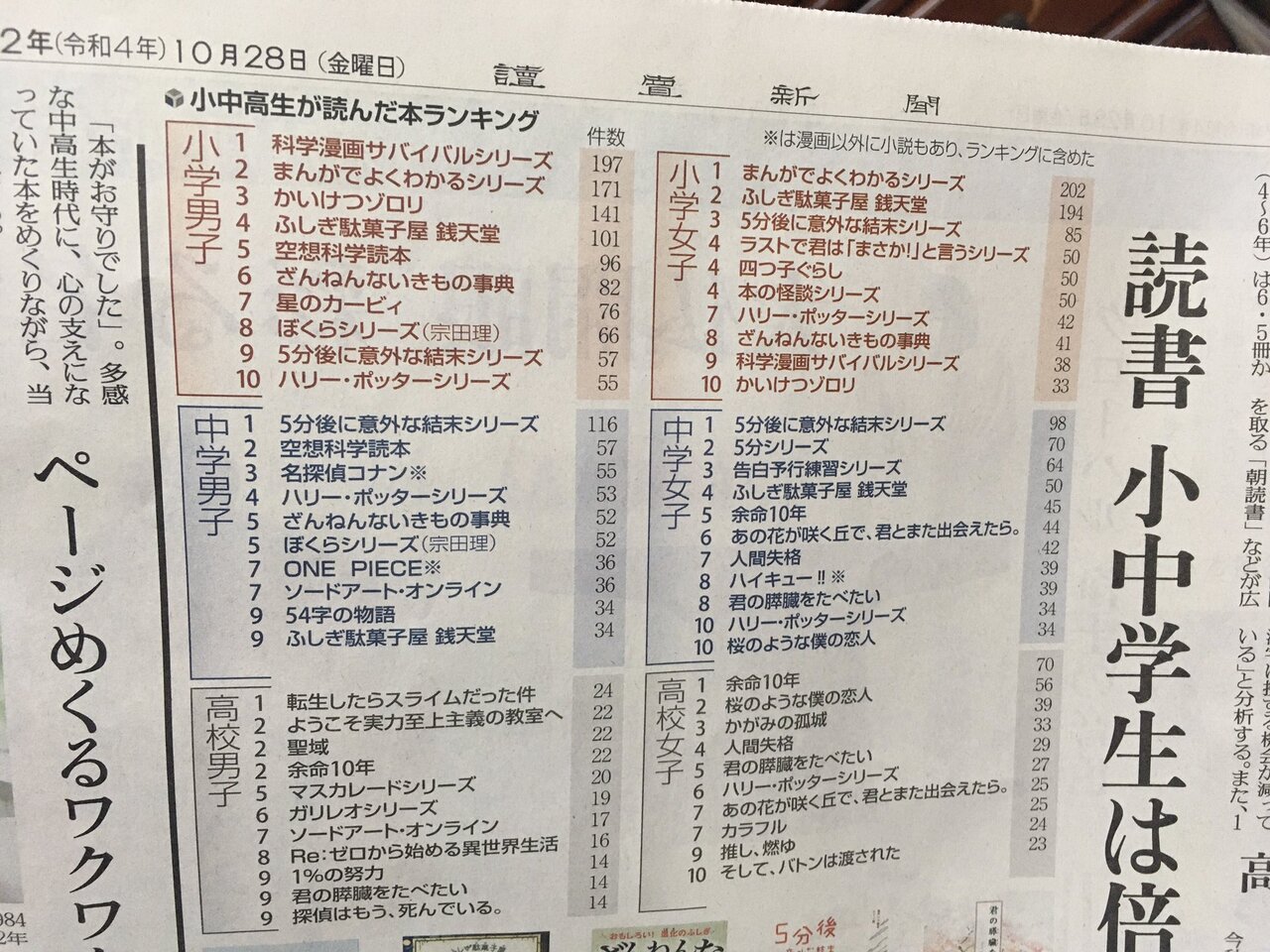 オラッ今の10代の読書傾向だぞ!!! pic.twitter.com/MC8nWL7lpb