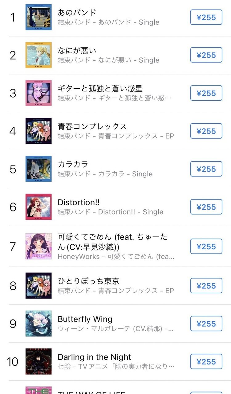 iTunes総合チャートにて、#結束バンド 「あのバンド」が首位獲得㊗