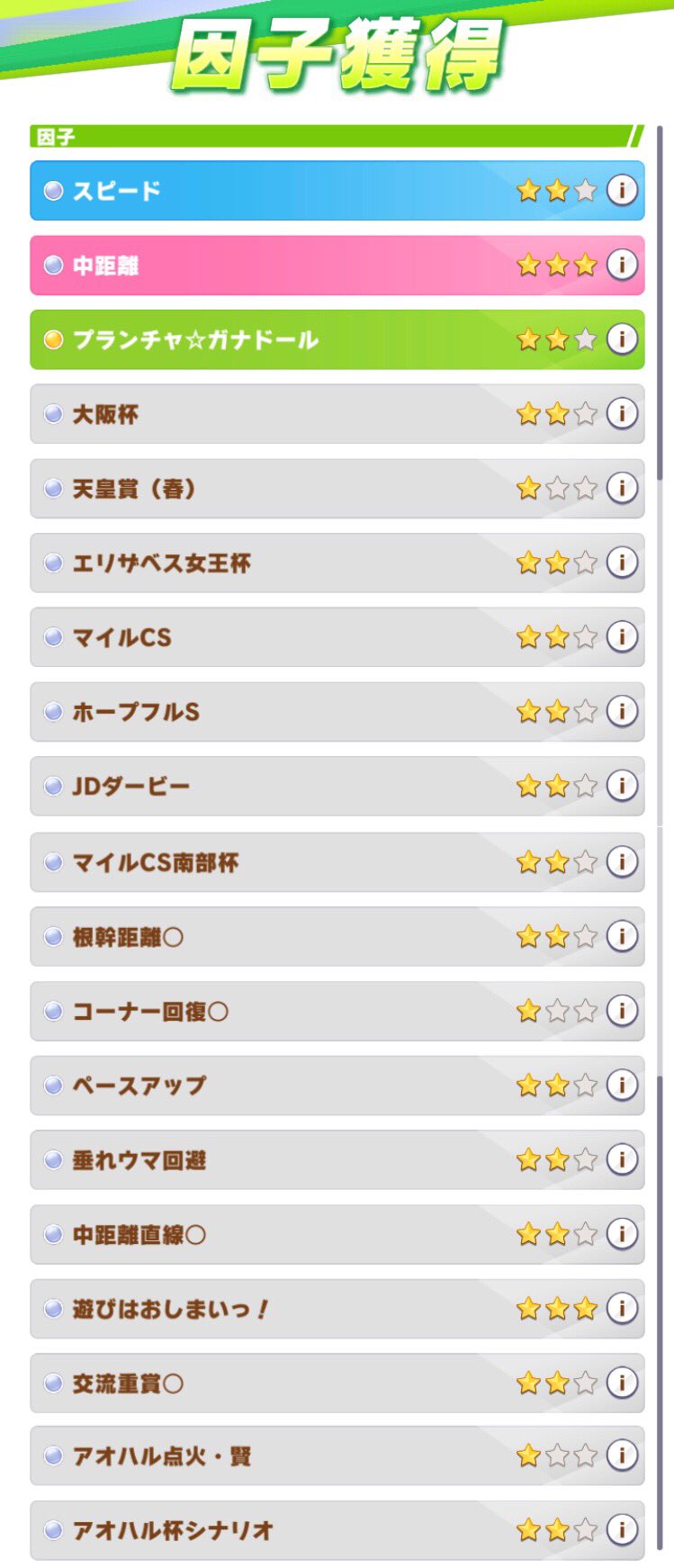 アオハル因子厳選レースローテの問い合わせがあったので貼っておきます。