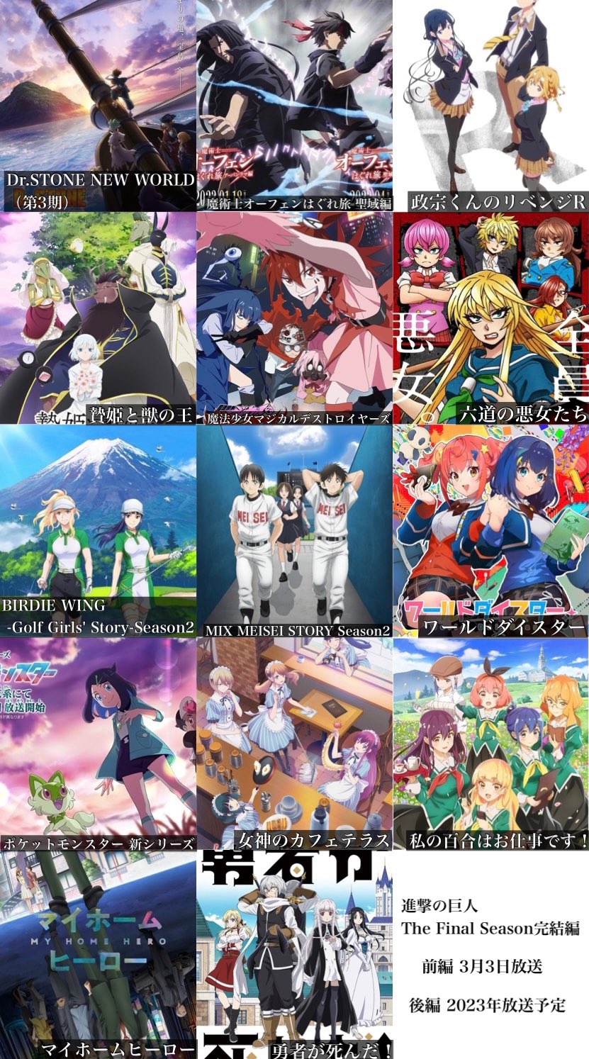 2023年春アニメ一覧です pic.twitter.com/GERKw7hY8s