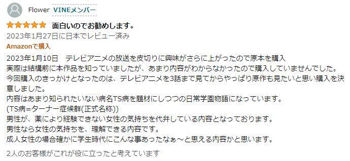 ・このレビューはターナー症候群が何かわかってないやろ