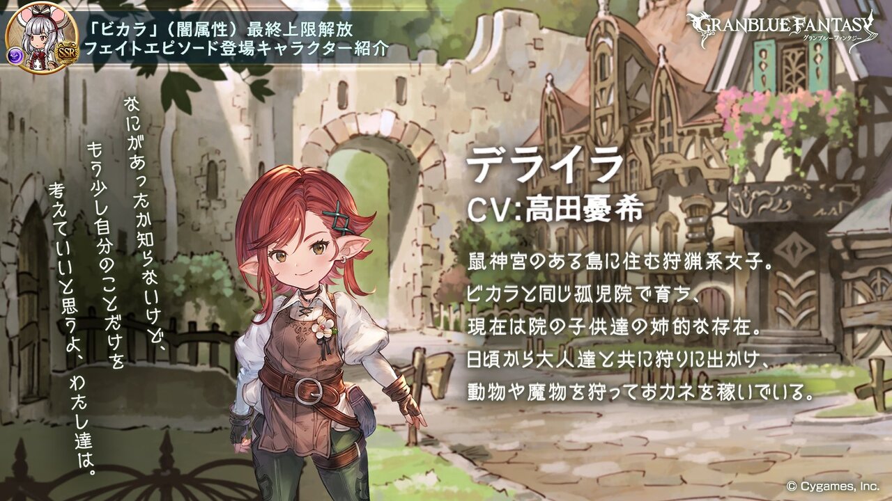ハーヴィン専用の孤児院でビカラと一緒に育ったデライラ。ぶっきらぼうながら、ビカラが院を出た後もたまにビカラの様子を見に来ていた。彼女はハーヴィンにしては背が高いが、それには理由があるようで── #グラブル pic.twitter.com/Gr3Uc1c3tP